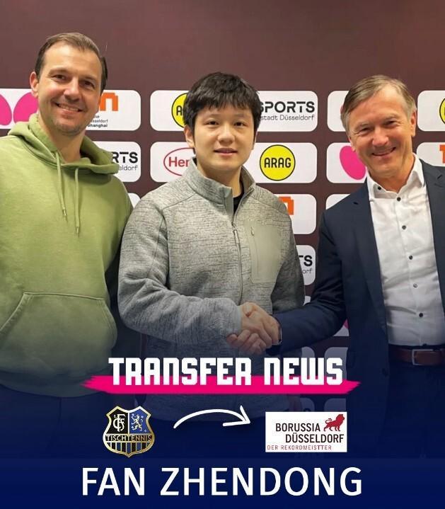 3月16日,德甲萨尔布吕肯乒乓球俱乐部在官方宣布,中国乒乓球选手樊振东,将会在本赛季结束后离开球队,转会加盟另一支德甲球队杜塞尔多夫队。
